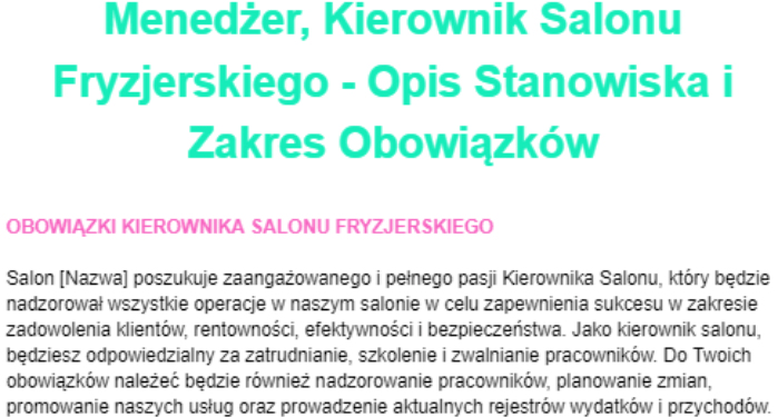 Opis Stanowiska Pracy Kierownika Salonu Fryzjerskiego